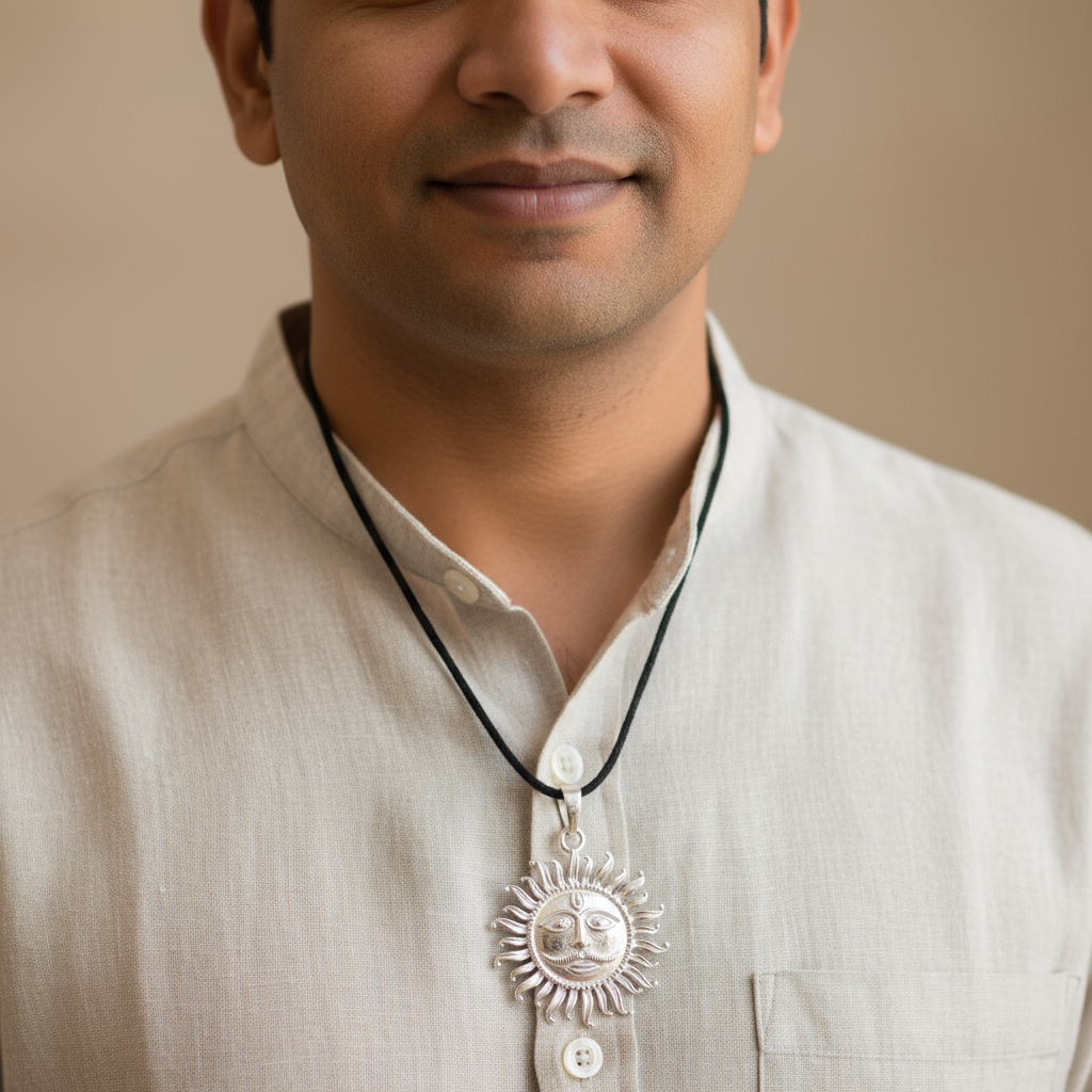This beautifully crafted locket makes a meaningful gift for loved ones or a cherished addition to your personal spiritual jewelry collection. Wear it close to your heart and invite the blessings of Lord Surya into your life.