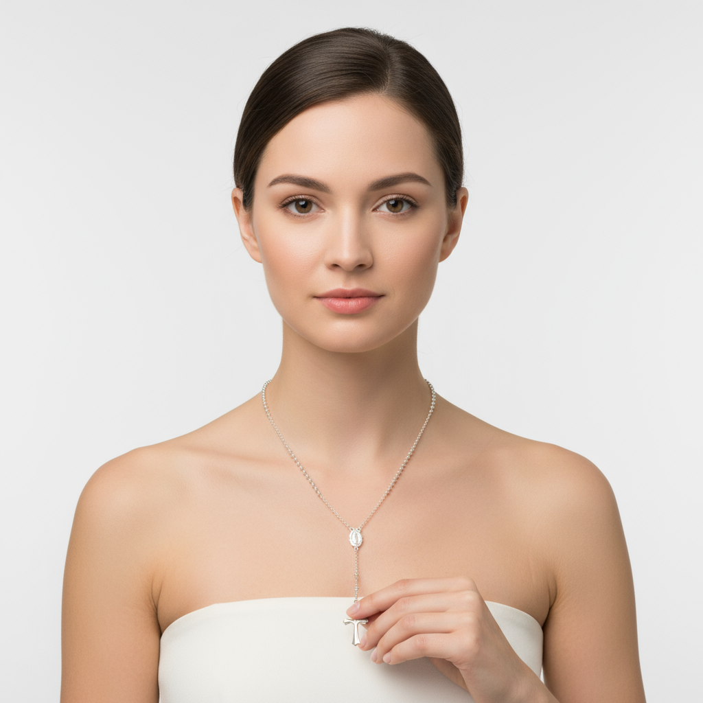 To maintain the brilliant shine of your sterling silver rosary, gently clean with a soft cloth and store in a dry place when not in use. Avoid exposure to harsh chemicals and perfumes.