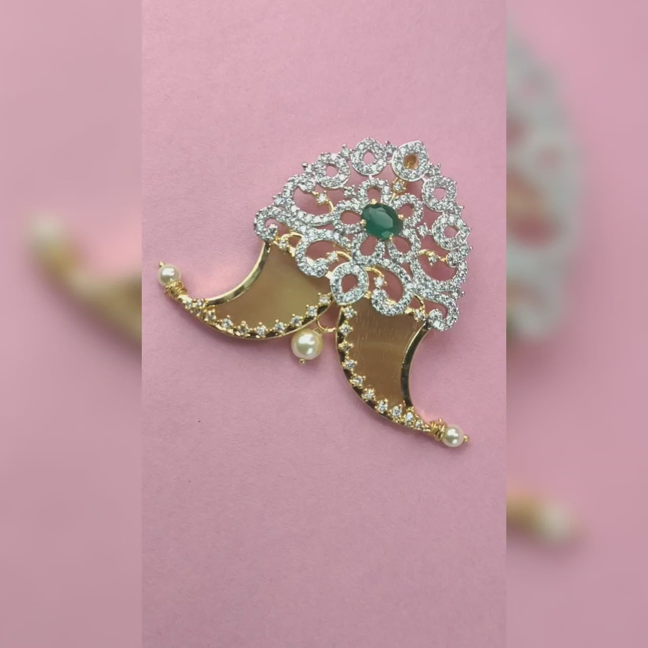 This American diamond puligoru pendant is perfect for men who want to make a statement at parties, birthday celebrations, and weddings. The combination of American diamonds and emerald creates a luxurious look that commands attention.