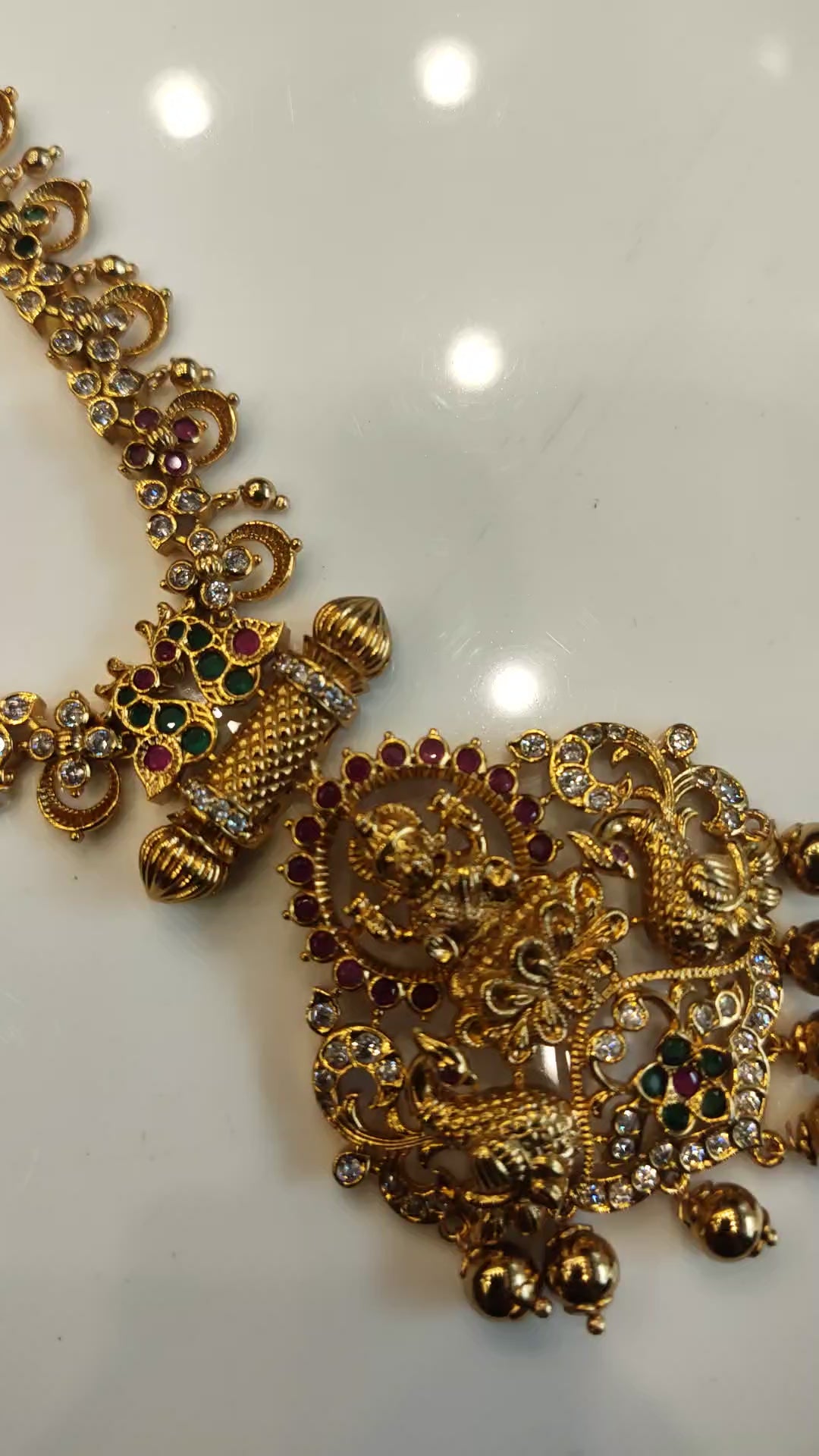 Bring ethnic vibrancy to your wardrobe with this Matte Necklaces Combo Set by Asp Fashion Jewellery. Crafted from high-quality materials, this set is designed with two statement necklaces - one long and one short - each featuring intricate carvings of Goddess Laxmi on the pendant. Matching earrings complete this look, making it alluring and timeless.