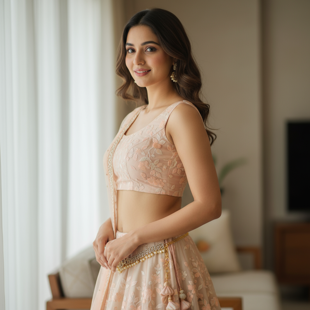 Adorn yourself with this exquisite floral design zircon 24K gold plate vaddanam that brings timeless elegance to your traditional ensemble. Featuring intricate floral motifs adorned with sparkling zircon stones, this designer waist chain is perfect for brides, festive celebrations, and grand occasions.