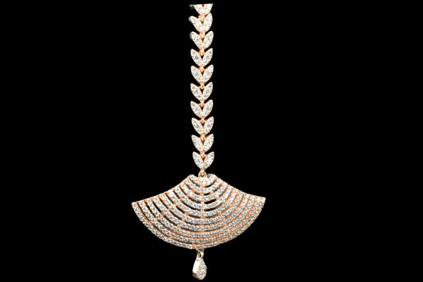 Zaara Maang Tikka - Rose Gold Plated with American Diamond | Elegant Bridal Jewelry