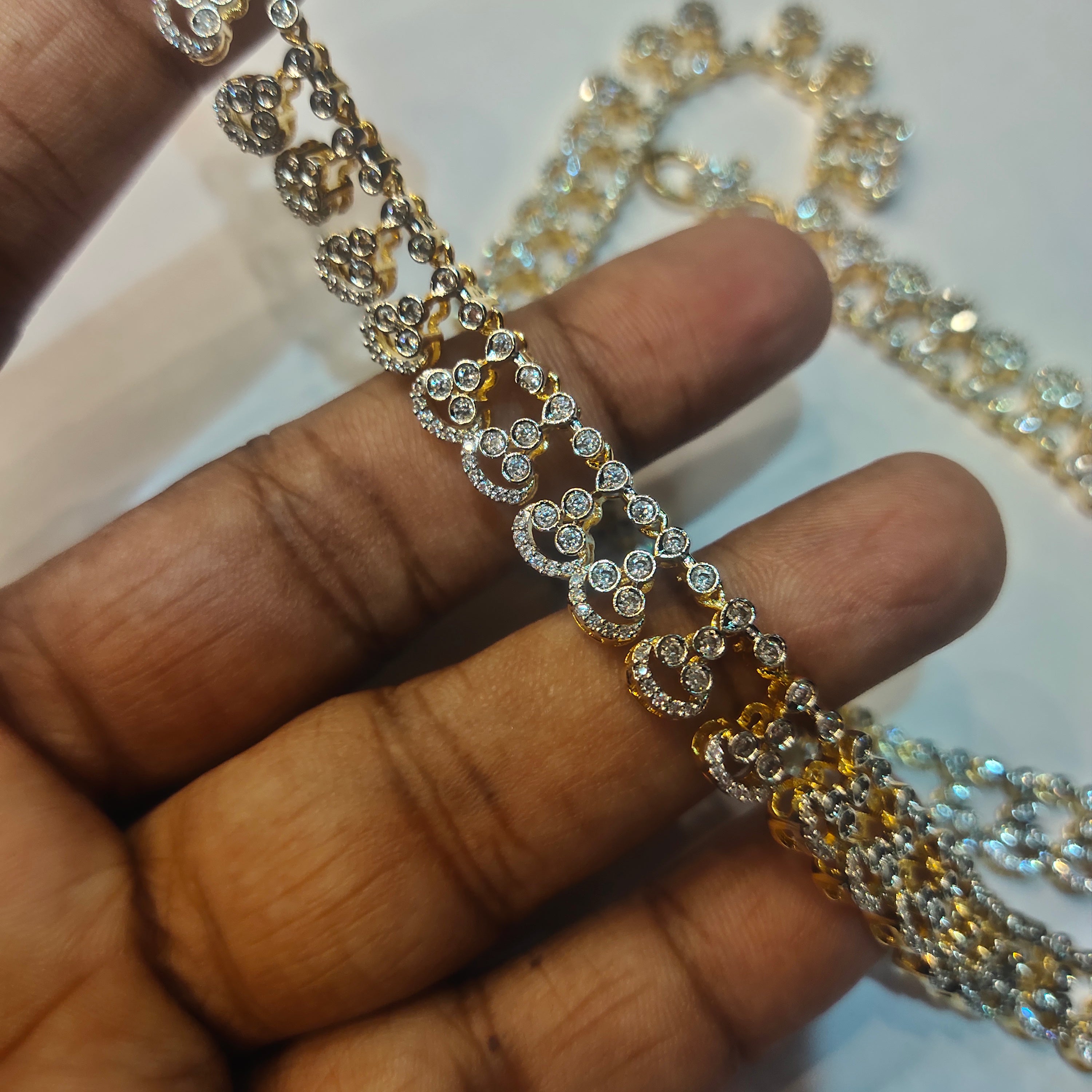 Elevate your style with these stunning Rhodium Gold Diamond Look Zircon Anklets. Crafted with precision and attention to detail, these elegant anklets feature brilliant zircon stones that mimic the sparkle of diamonds, set in a luxurious rhodium gold finish.