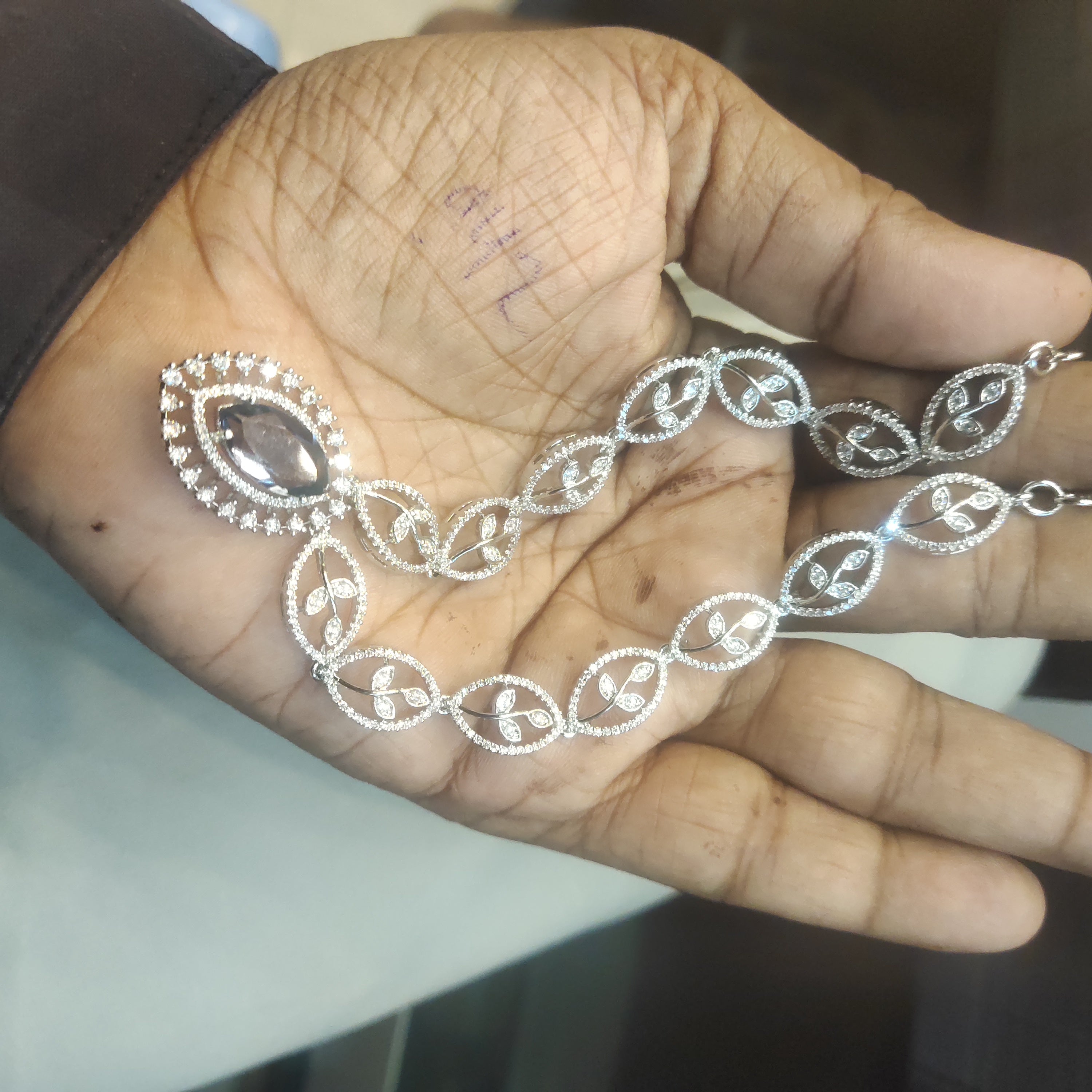 Experience the brilliance of diamonds without the price tag. This stunning necklace set features premium white rhodium plating with sparkling zircon stones that mirror the radiance of real diamonds.